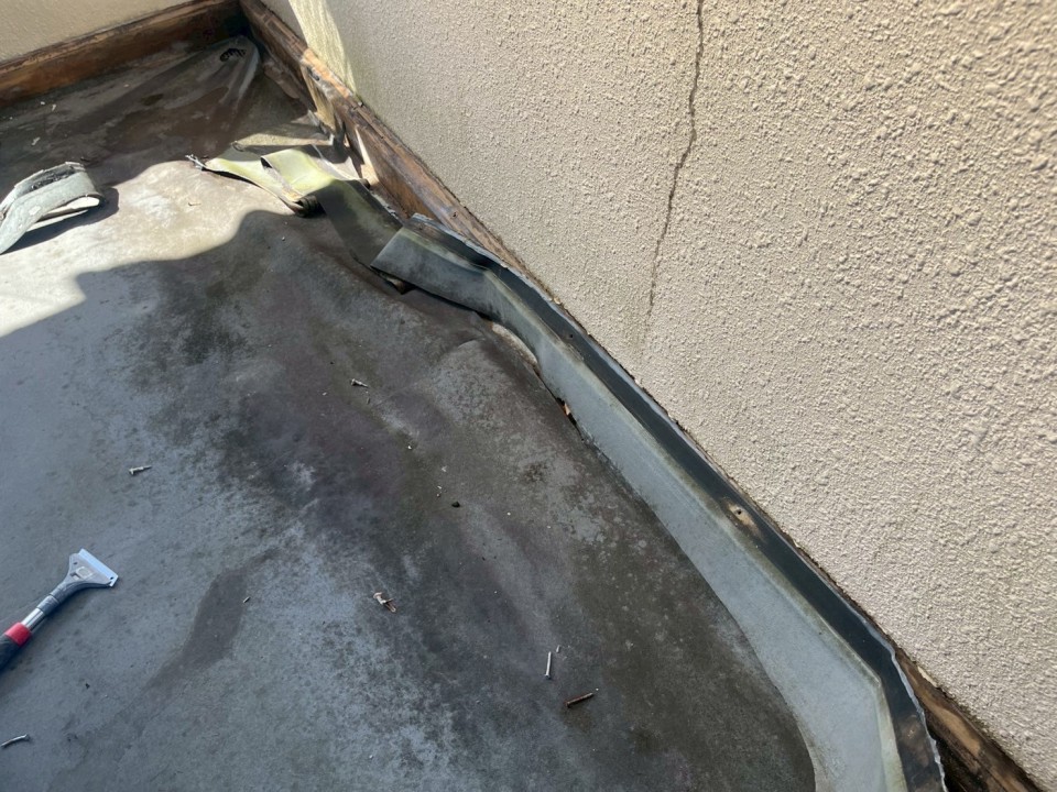 まずは立ち上がりの押さえ金物を外しシートを撤去します。