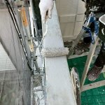 シーラーを塗布した後で中塗り工事です。