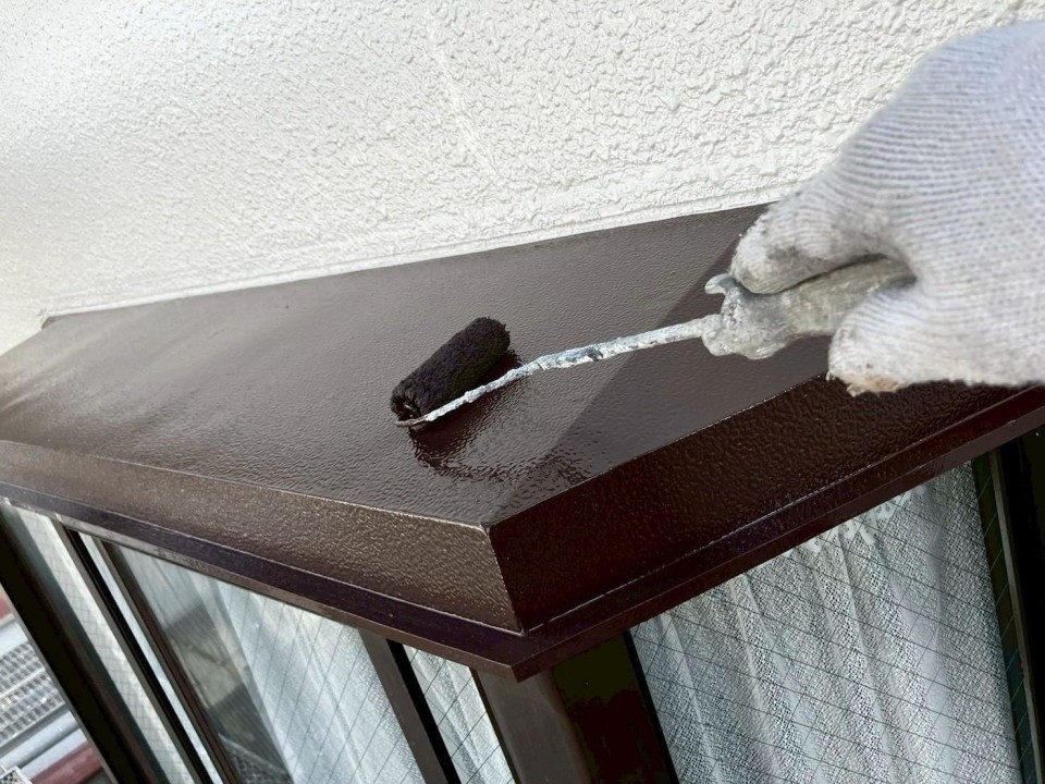 外壁の塗装です、下塗り、中塗り、上塗りと仕上げていきます。