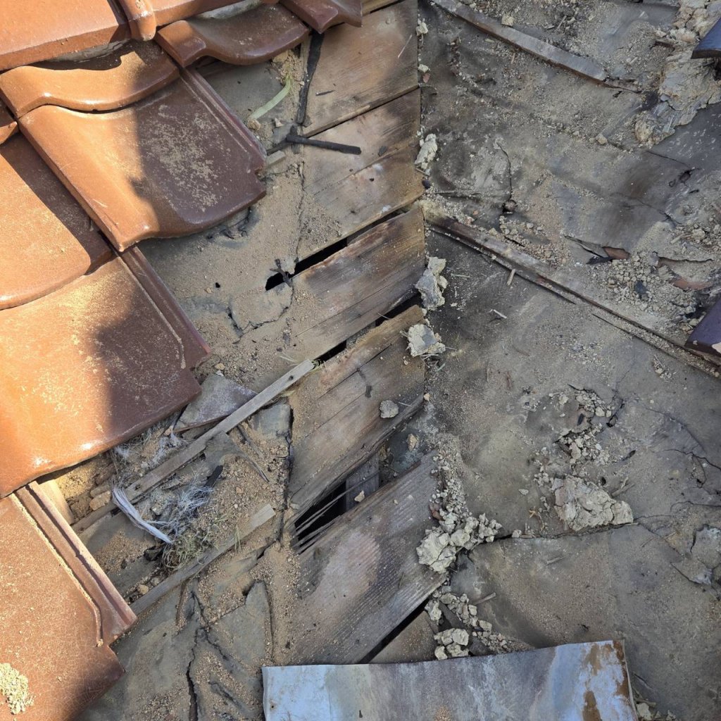 古いルーフィングはふやけて野地板は所々穴が開いています。