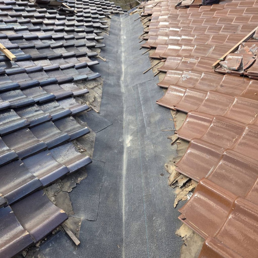 下地のルーフィングを幅をしっかりと取って新しく桟木も打ち替えしています。