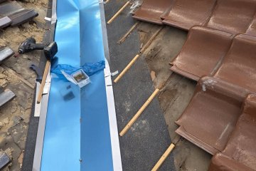 ステンレス製の谷を取り付けして瓦を伏せたら完成です!