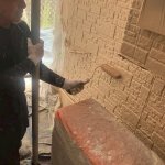 足場を組んでまずは水洗いです